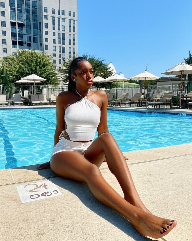 LA girl, always barefoot by the pool 🌊 My feet are tiny and...